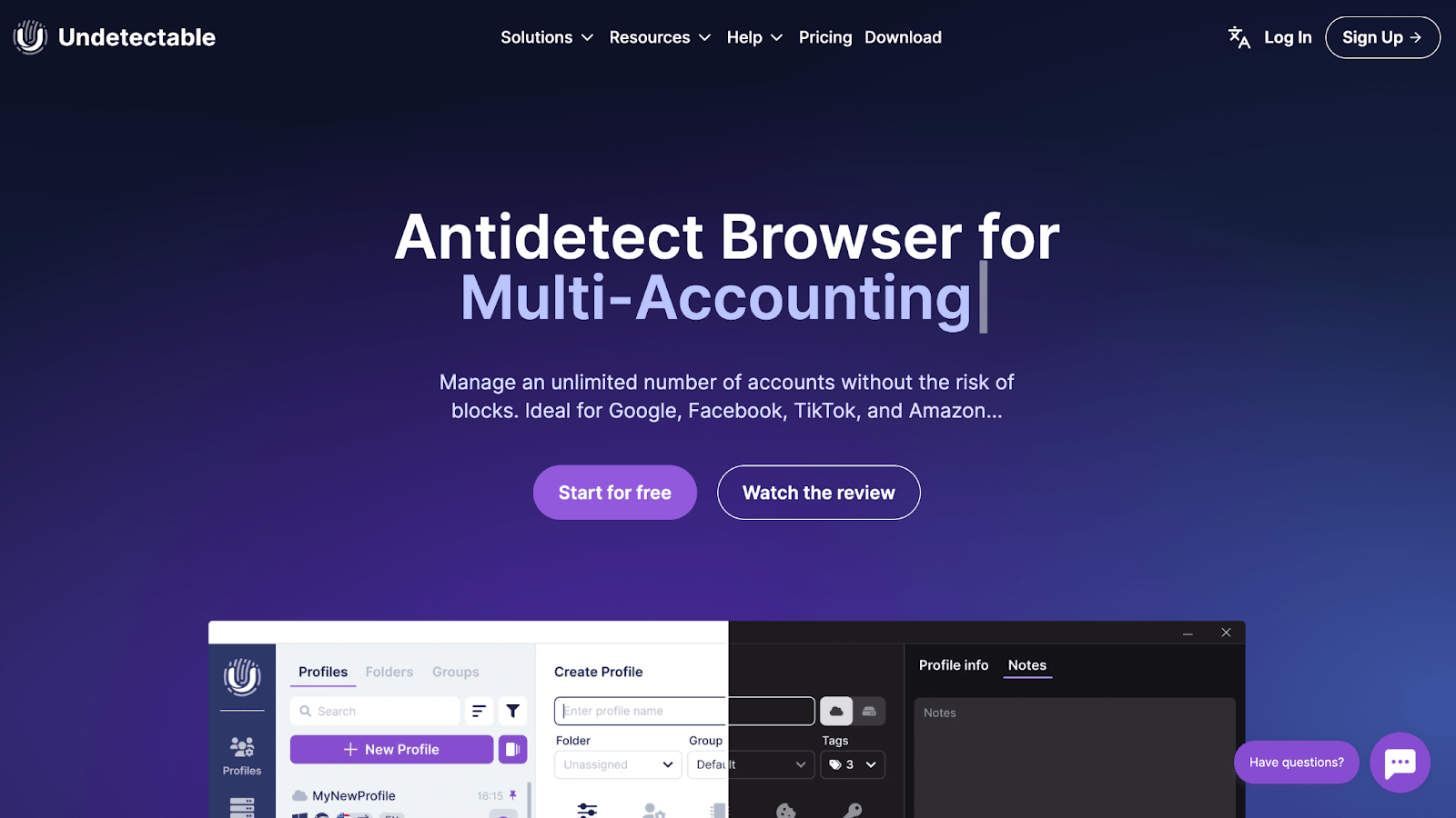 Undetectable Browser uses device fingerprint-changing technology that enables you to bypass blocks and restrictions on various websites. Unlike VPNs or proxy services, which only mask the IP address, Undetectable Browser creates unique profiles for account management, giving each profile its own digital fingerprint that you can customize as needed.